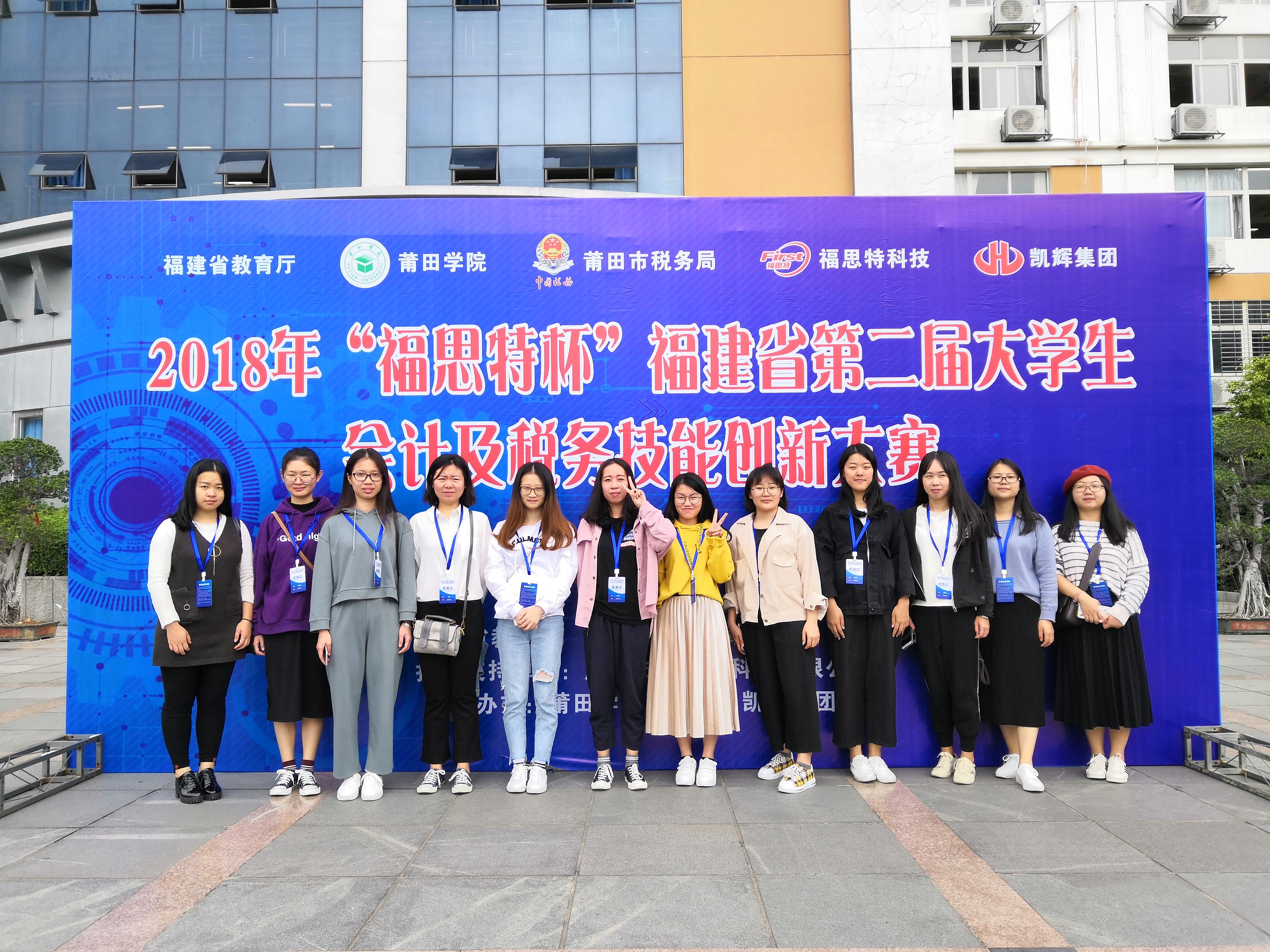2018年“福思特杯” 第二届福建省大学生会计及税务技能大赛是由福建省教育厅主办、莆田学院与莆田市税务局联合承办。 本次比赛共吸引来自福州大学、华侨大学、福建农林大学、beat365在线唯一官网登录等41所院校近500名参赛选手及指导教师前往参加比赛。我校共有12名学生在林秋花老师的带领下赴赛。