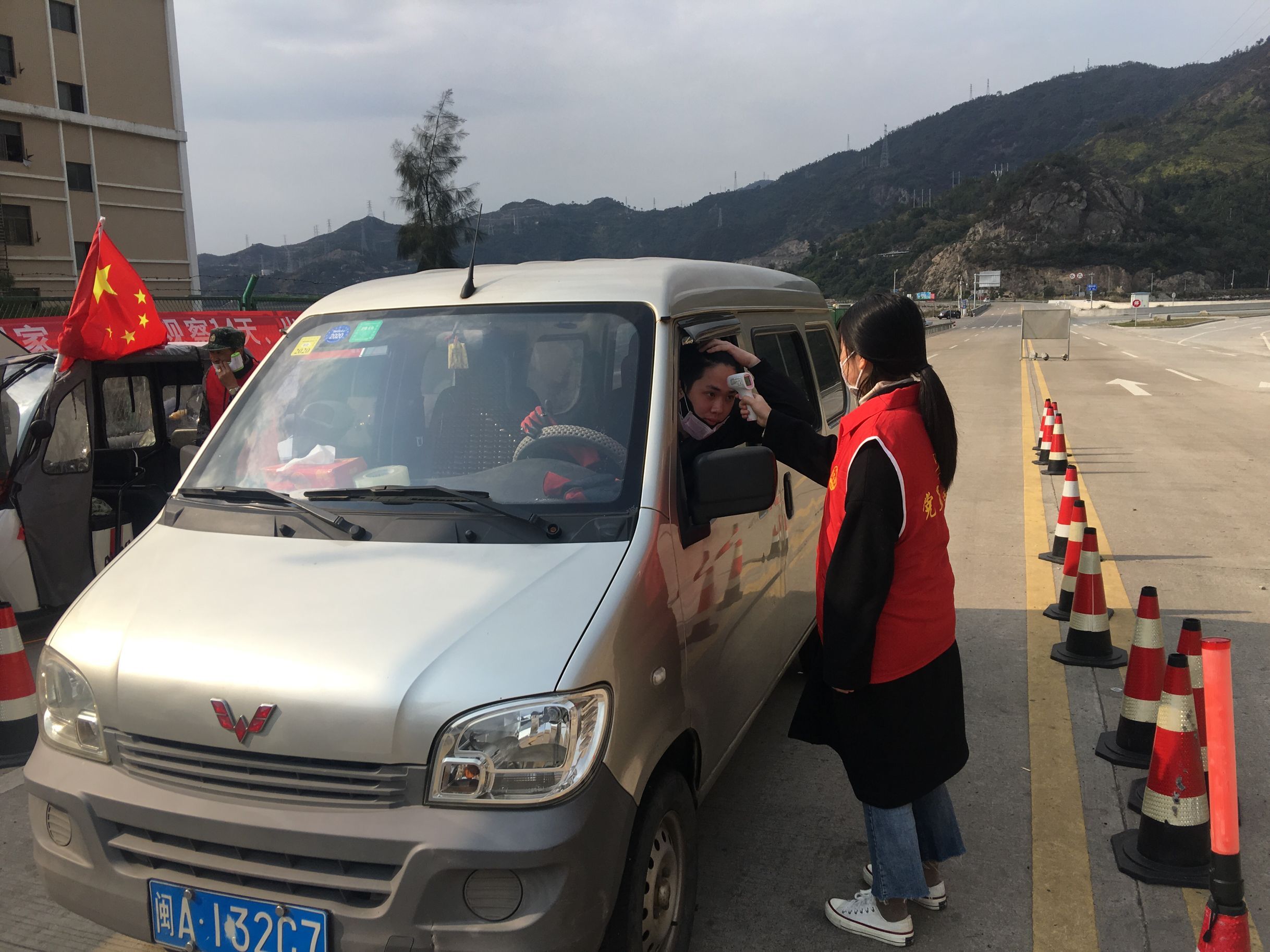 苏家美为来往车辆检测体温