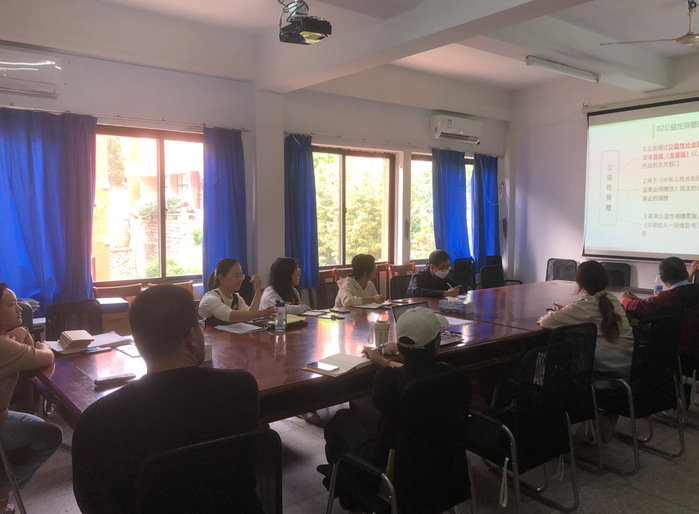 为提高教师的教学能力,促进教师与教师之间进行互相交流与学习,beat365在线唯一官网登录财务管理系于2023年11月8日下午14:30在曼谷楼306开展教研活动。本次教研活动主题为税法课程教学方法创新及课程思政,会议由叶青老师负责组织与主讲,财务管理系全体教师准时到场参加本次研讨会。