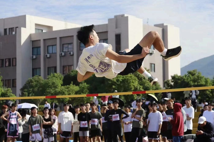 男子跳高第一名林伟城同学