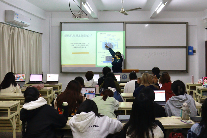 讲解完文字部分,beat365官网融媒体中心干部谢伟腾同学就beat365官网佳能200D二代相机展开拍摄技巧说明。谢伟腾同学参与过多次我校重大会议及活动的拍摄工作,是一名经验丰富的“摄影师”,他全面总结了beat365官网拍摄需求,强调拍摄的角度及构图问题,并准备了多张参考图供大家学习。