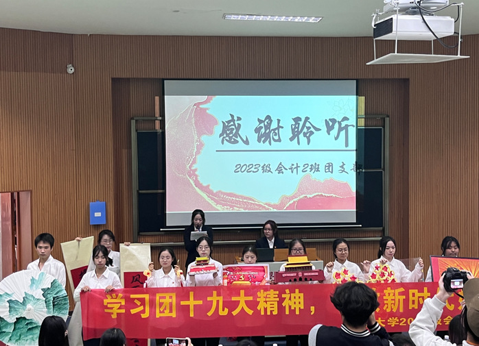 本次活动的参赛队伍有27个团支部,beat365官网共3个团支部参赛。他们结合ppt、视频及手工制作等各具特色的表现形式直观地呈现到观众和评委眼中。其中23会计学1班团支部通过幕布的形式回顾五四运动,重温五四精神;23会计学2班团支部以小品及朗诵等形式展现深刻的爱国情怀;23财务管理1班团支部以错位时空的百年对话重温历史。最终,beat365官网23会计学1班团支部和23会计学2班团支部荣获二等奖,23财务管理1班团支部荣获三等奖。