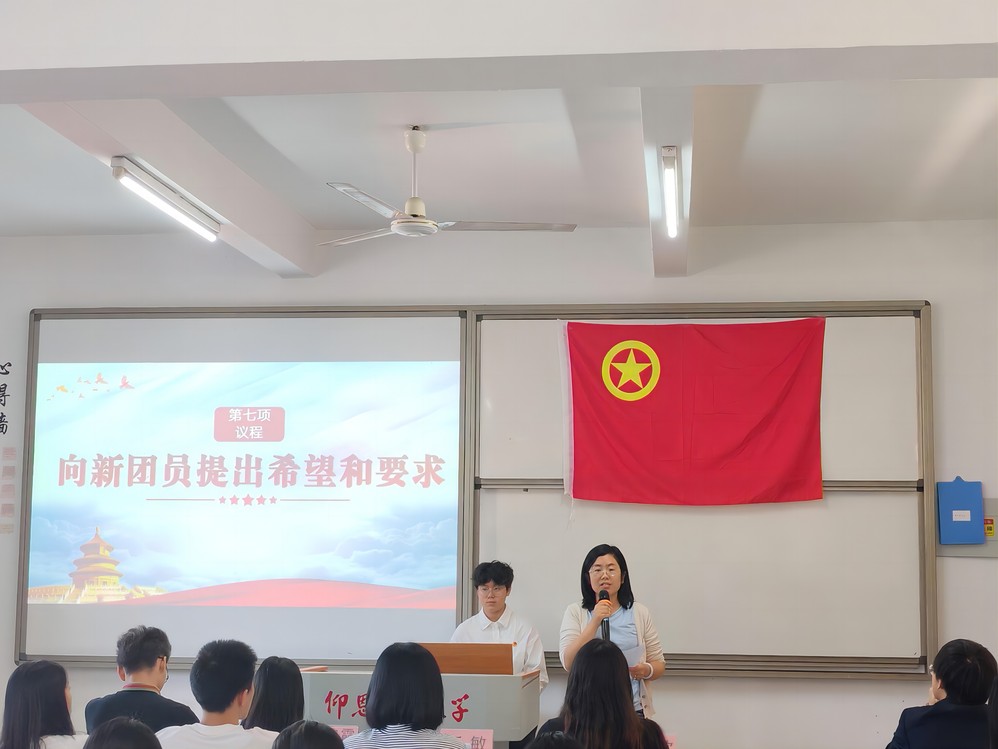 此次入团仪式在庄严的国歌声中拉开帷幕。辅导员李诗琦首先宣布了新团员名单,并由吴锦霞老师和卢传欢老师为新团员颁发团徽徽章和团员证。紧接着,在谭雄辉同学的带领下,全体新老团员进行了宣誓礼。在最后的寄语环节中,任敏老师向在场团员提出了希望与要求,其指出,不论新旧团员都要不忘入团的初心,扛起责任与义务,在班集体的学风、班风等建设中发挥力量,严于律己,不断增强班级的凝聚力与向心力。