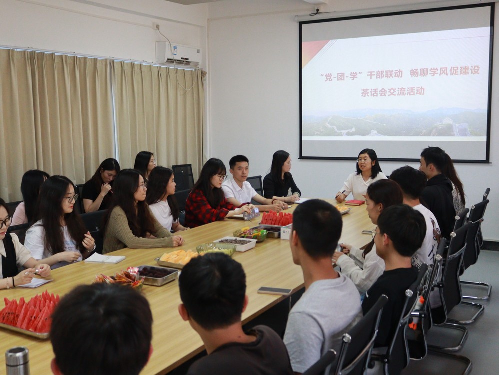 为进一步推进校园精神文明建设,推动形成良好的学风院风。5月29日下午,我院于曼谷楼210室举办学风建设茶话会活动。院党总支书记兼副院长任敏出席会议并主持,党总支副书记吴锦霞、党总支支委、学院辅导员及学生党团学干部参加会议。