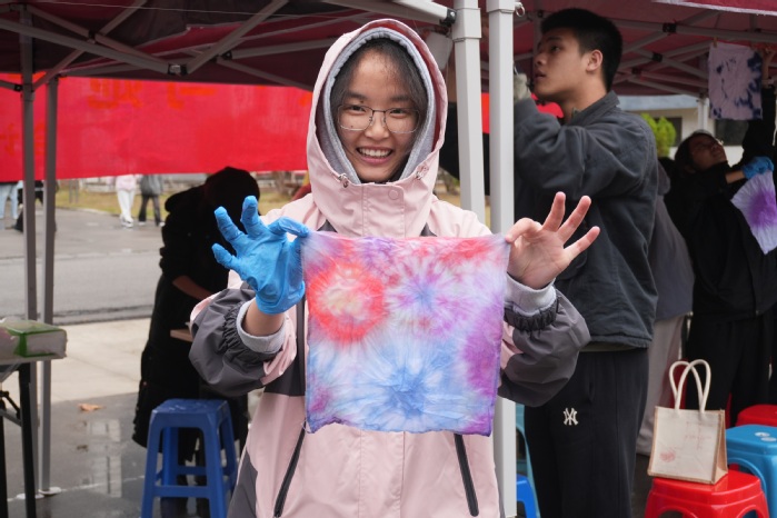 此次扎染活动,不仅让女生们在忙碌的学习生活中暂得放松,用双手创造出独一无二的色彩记忆,更让非遗技艺在指尖焕发出新的光芒。beat365在线唯一官网登录学生会与普照书院成功将传统手工艺与校园节日相结合,为校园文化建设增添一抹亮丽色彩。(林友金/文图)